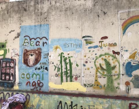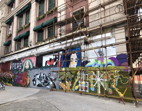 在这里是我们上海特别有名的壁画一条街。说了直白点,就是涂鸦墙一条街。非常可惜,现在的涂鸦墙已经被拆除了,一大片了。只能从剩余墙上能看到之前的涂鸦。好怀念之前的情况呀。