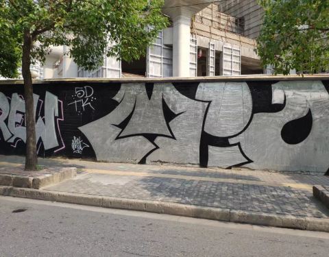 靠近长寿路昌化路的苏州河边,今天路过,最有特色的就是路边围墙上的各色涂鸦,拍照是不错的背景,M50创意园区就在这条路上,路口一段路在施工了,开建生活广场,估计涂鸦墙以后也要拆,拍个照留念。