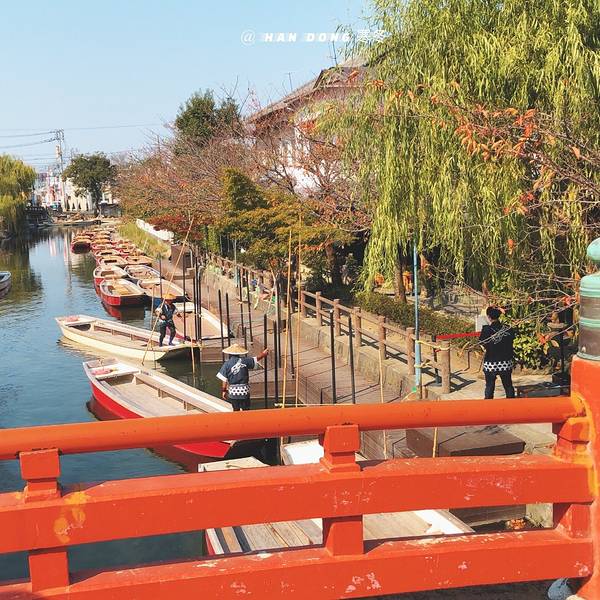 ...一路上是古老的日本民居、柳树、迎春花,穿着日本特色衣服的船夫用特有的抑扬顿挫的音调吟着古老的歌泛舟迎风而下,一路上是古老的日本民居、柳树、迎春花,穿着日本特色衣服的船夫用特有的抑扬顿挫的音调吟着古老的歌。
