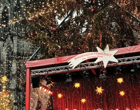 圣诞市场是德国这边圣诞节前期的一个非常传统的集市。集市主要在大教堂附近才有圣诞市场是德国这边圣诞节前期的一个非常传统的集市。它只有在圣诞节前三周才开始运营,所以其他季节来科隆的时候也逛不到。集市主要在大教堂附近才有。