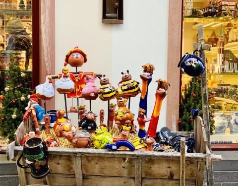 聖誕集市當然要發發這琳瑯滿目的東西,可惜這個地方只收現金,結果我什麼都買不起,發現了一個賣炒杏仁的檔口,掏盡了喲最後一個硬幣就買得起一小包,幾十種口味,真是太好吃了,好吃到哭那種,唉,一個檔攤,過了這個節,想找都找不回來,還發現了一家陶瓷店,各種小東西太可愛了,一樹陶瓷,一木車陶瓷,一角落陶瓷,量詞不夠用了