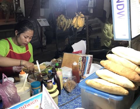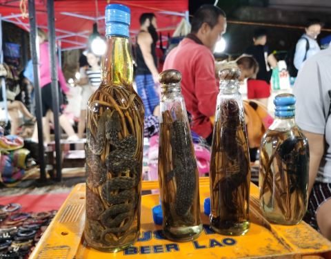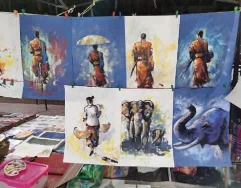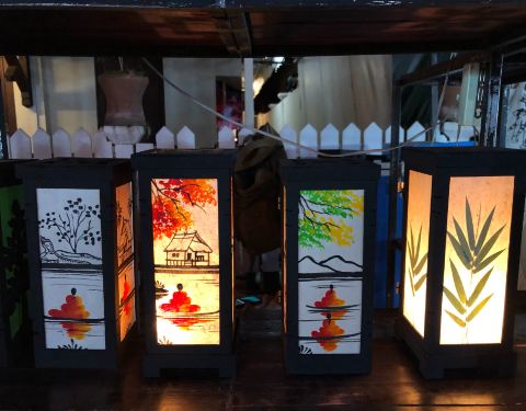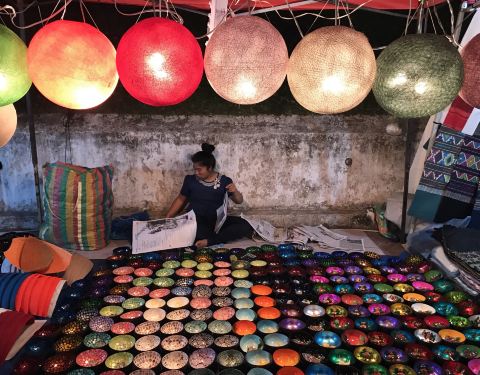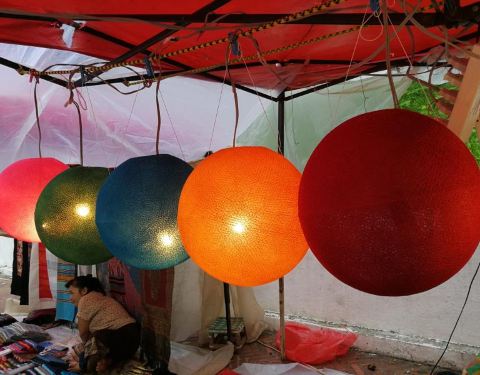 到了琅勃拉邦逛夜市是必然的,傍晚吃完晚饭后去闲逛,人气超旺,中国游客很多。夜市主要经营当地的手工艺品,东西不贵,但是记得砍价。手工质量其实一般般,但是作为手信可以带一些回来送人。当地人下午5:00左右开始摆摊,老板坐在帐篷里等着客人上门询价,英文不好的直接计算器按个金额讨价还价。有小部分老板会中文,据说当地有中文的培训机构可以学习。