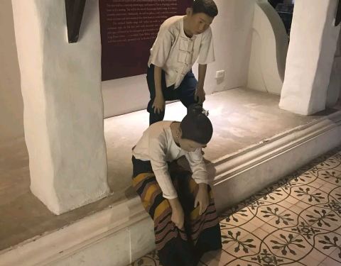 清迈文化中心分三个馆,我们参观了其中一个,清迈的历史和清迈藩王介绍。门票90泰铢,儿童50泰铢主要包括一座清迈纺织历史博物馆和一座餐厅。餐厅每晚7点开始举办“康托克”宴会,客人围着小圆桌席地而坐,品尝昔日供奉王室的佳肴,七菜一汤随便续,其中最爱咖喱肉,很好吃,正宗泰北风味。边吃还有泰国歌舞表...主要包括一座清迈纺织历史博物馆和一座餐厅。餐厅每晚7点开始举办“康托克”宴会,客人围着小圆桌席地而坐,品尝昔日供奉王室的佳肴,七菜一汤随便续,其中最爱咖喱肉,很好吃,正宗泰北风味。边吃还有泰国歌舞表演可以看,小风一吹,靠在垫子上,很惬意~ 一进门就可以看到几个姑娘在做表演,咦?这不是我们的扬琴嘛,不过好像是小一号的哈哈~还有刻西瓜的,雕花~ 泰国的歌舞真的跟傣族的一样一样的,手势、颤腿,看起来好熟悉。 清迈文化中心分三个馆,我们参观了其中一个,清迈的历史和清迈藩王介绍。门票90泰铢,儿童50泰铢。 展开