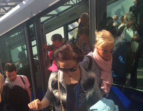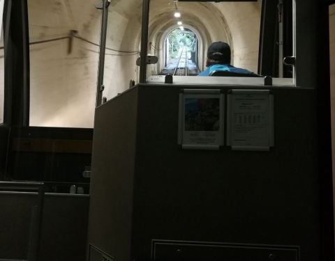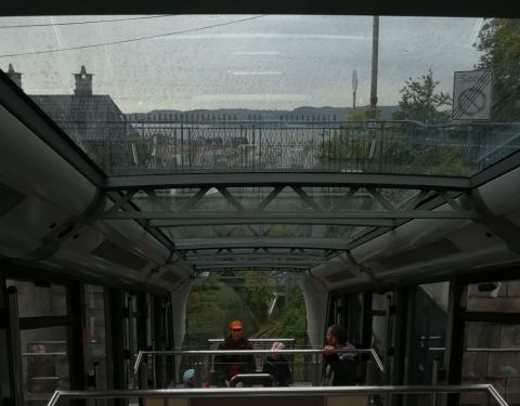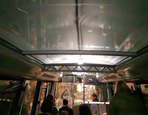 上上可以步行,也可以坐缆车,上下行共95克朗。扫描车票,即可入站,很是方便。车辆设计很好,不同位置的视线都很好。上下行的过程也是一个观景的过程。