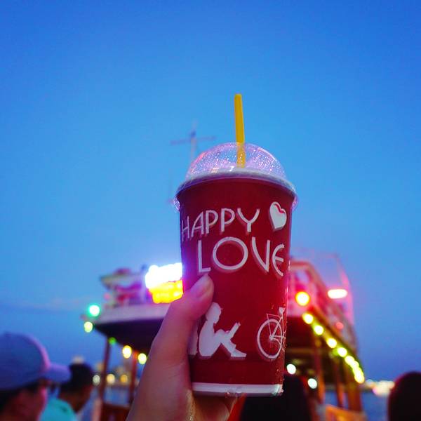 二楼摆了不少塑胶椅子,十分简单。我们临围栏而坐。夜幕降临,船缓缓地前行,我眺望着两边的夜色。虽然没有广州珠江新城的灯火阑珊,但也算是挺有小资感的。