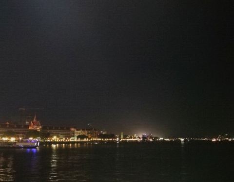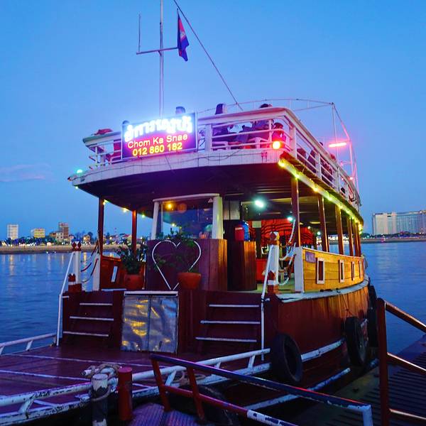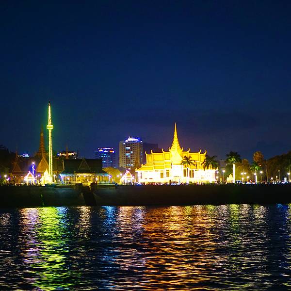 不远处有亮起来的金边皇宫,还有一排彩灯树,闪烁的光芒跳进了河里。边吹着风,边细说生活小事或许就是金边人民的生活常态吧。仔细看,你会发现岸边有渔船,柬埔寨人最朴素的生活就是水上人家的生活。靠水吃水。这或许是柬埔寨人最顺应自然的生活方式,通常包船从上游漂到下游,可以观察一下两岸人民生活的场景。据说当地渔民有一种特色小吃,就是把吃剩的腐烂鱼肉封存后发酵,作为之后下酒的小菜,名字叫做“臭鱼”,重口程度赶上中国的臭豆腐!有机会,小伙可以去看看。