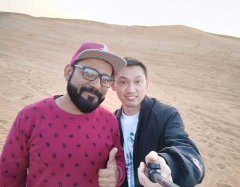 无穷无尽的沙漠,看不见尽头,没有终点,只有星星点点的游客光着脚踩在枯燥的黄沙里,看着落日,看着身边陪伴你的人。 订好的行程是落日冲沙+酒店接送,大概3点半司机来酒店接我们,穿过城市进入浩瀚的沙漠之中,先到自驾ATV区域,预先练习感受一下沙漠里的狂野。 四驱越野车经过放气和引擎冷却后,就会带着我们正式进入冲沙之旅,坐在车里看着窗外,顺着沙坡尽情的摇摆,根据个人情况可以和司机商量是更刺激的行驶方式还是平缓一些的方式。在沙漠中心区域稍作停留,欣赏一下沙漠落日,抚摸一下黄沙的质感。 最后在沙漠驿站骑一次骆驼、看一场表演、用一顿沙漠晚餐,当然还有水烟之类的特色产物可以体验。