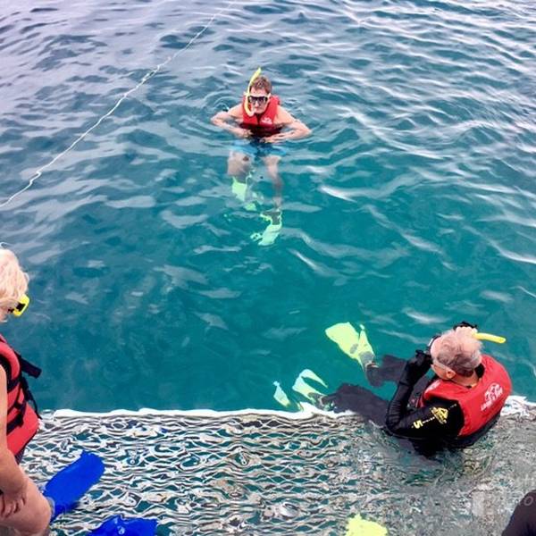 游累了,坐坐半潜船,轻松的看看海底大堡礁,除了震撼还是震撼由于当天风浪稍大,我被海浪打了几下有点胆怯,老婆胆子比较大,带着自备的呼吸管,尝试了几次下水,倒是越游越顺利,还带着我一起去看大堡礁,直呼过瘾。虽然这次没有去深潜,有点小遗憾,但已经超过了我们的预...由于当天风浪稍大,我被海浪打了几下有点胆怯,老婆胆子比较大,带着自备的呼吸管,尝试了几次下水,倒是越游越顺利,还带着我一起去看大堡礁,直呼过瘾。虽然这次没有去深潜,有点小遗憾,但已经超过了我们的预期,老婆似乎很喜欢大堡礁,觉得有机会还要再来。游累了,坐坐半潜船,轻松的看看海底大堡礁,除了震撼还是震撼!时间过得很快,3个小时的外堡礁活动就要结束了,意犹未尽的回到凯恩斯。 展开