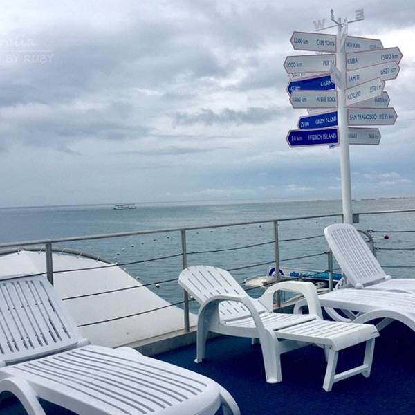 这次未能跳进大海里玩耍,实属遗憾呀!好朋友你早不了,晚不来,偏偏这几天。来了凯恩斯大堡礁,若既不上天,又不入海,那你来干嘛呢??直升飞机的俯瞰大堡礁全景,价格150-300澳元不等,分10min,20min,30min,还分直升机和小飞机,距离差100m,直升机可以更近距离观看。当然,也要看老天爷是否给力。我们出海的那天,上午下雨,下午放晴了。离开的当天,听说接着几天有台风,均不能出海,We are Lucky dogssss~~