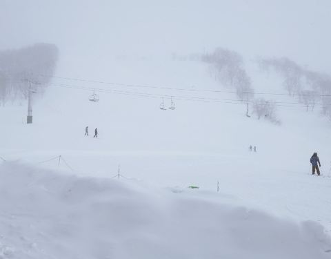 去到滑雪场的时候因为下着大雪,无法远眺羊蹄山,稍微有些遗憾,但下雪也有其独特的味道