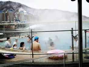 洪川温泉是韩国唯一沿着河川盖的温泉,那里发展成一个度假区,水质很好,周边风光秀丽,是一处天然的温泉,附近还有一个滑雪场,冬天可是受游客的欢迎,那个有各种功能的温泉池,设施比较完善,还有大型水上娱乐橡木,而且服务很好,躺椅,饮品,水果供应充足,非常享受。