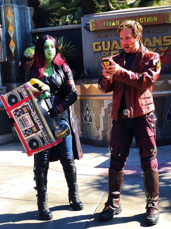 银河护卫队的Show,由卡魔拉和星爵一起表演,每天时间可以在App里先看好,听着熟悉的背景音乐,看着两位主角的互动,还是蛮有趣的。而且,大概是我脸盲的比较严重,觉得两位演员,尤其是星爵,和戏里克里斯.帕拉特长得很像呀。