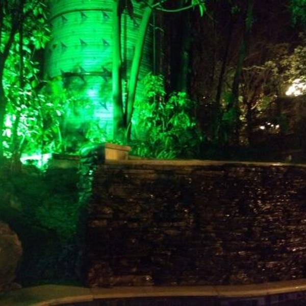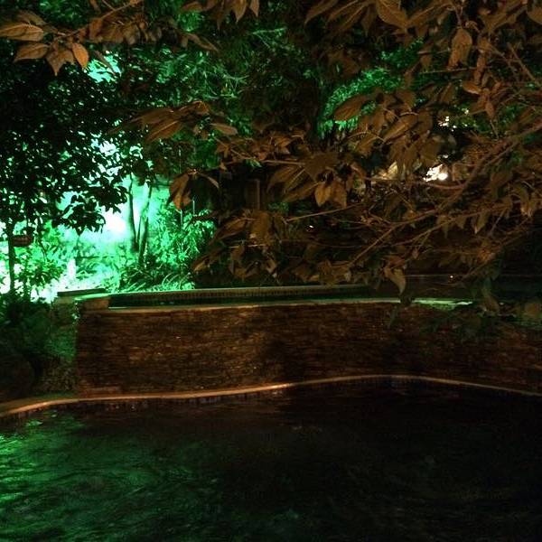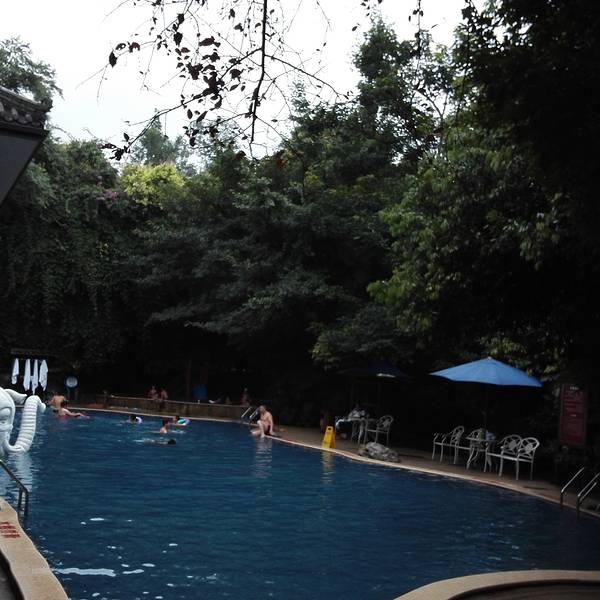因为第二天一早要上峨眉山,就近原则,瑜伽温泉虽然泡池规模没有附近的一些温泉馆规模大,但比较清静,特别是晚上,园内不少历史悠久的树木,整个院落围合式建筑群,登记好后入内,换完衣裤,过了建筑,温泉浴场就在这个建筑后面的合围中。听服务员说,冬天晚上泡温泉更好。