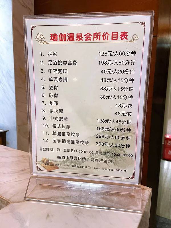 经过了接近1个小时的车程到了峨眉山下报国寺路上,一个安静的地方,在入住的峨眉山大酒店里,在幽幽深处,找了这家有室外温泉的瑜伽温泉。