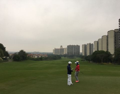 周围楼盘太多,风景一般般。水比较多,球道的草修剪地很好,软硬适中,果岭实在太差了,几乎没有保养,都见沙底了,很难看出线來。服务一般般。