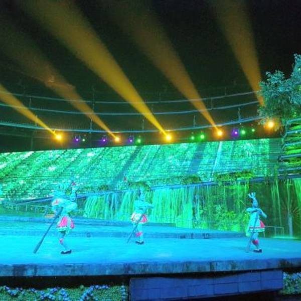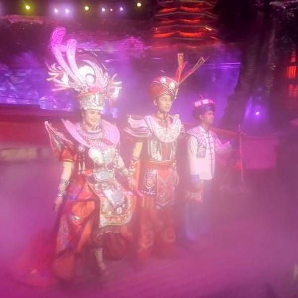 三江风雨桥,是侗族建筑艺术的特色,也是侗族人民劳动智慧的结晶,最引人注目的是《坐妹》能穿越时空却韵味不减把侗族原生态丰富多彩的传统婚恋习俗浓缩在一夜之间的一更“走姑娘”、二更“闹姑娘”、三更“坐妹”、四更“破晓之喜”。一部最具传统性、民俗性和价值性的侗族风情大型实景演出!