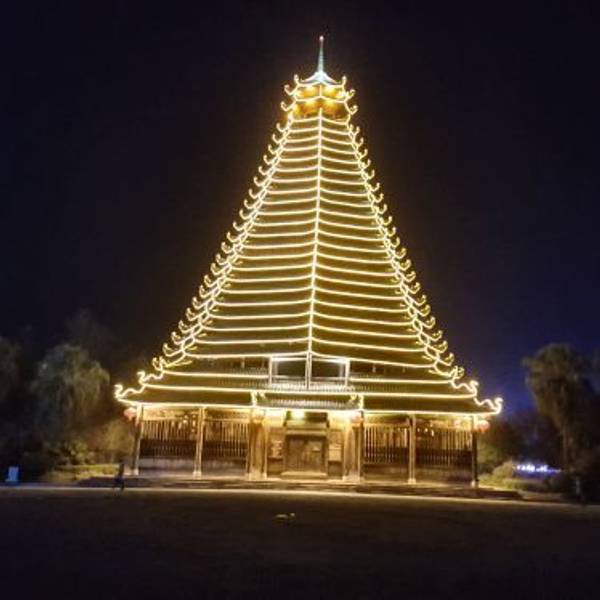 乍一听,我是真的吓了一跳,怎么除了北京,这儿也有鸟巢,后来去了才知,这是一栋仿古的建筑,由十三层密檐式屋檐构成,层层叠叠,越往上越小,远远就可以看见它,孤傲的矗立在侗乡的一角。登楼后才发现,里面的阁楼很多。晚上在这里,还可以欣赏到大型民族风情演艺《坐夜》。所以这里的门票也就比较贵了。140元一人,不过比起单买接近200元的《坐妹》的门票还是要划得来的多。
