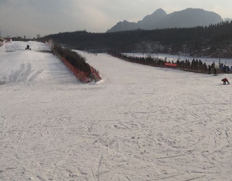 位于五指山风景区内,依山就势而建,来滑雪的人挺多,挺不错的。