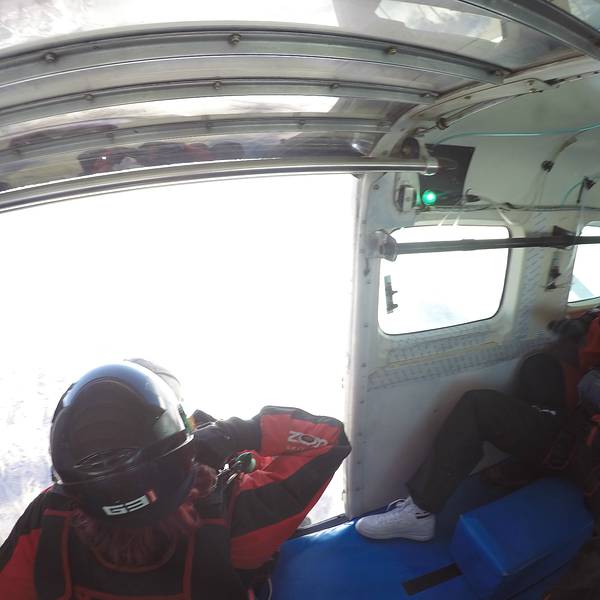 天气好的特别适合跳伞。趴在飞机门上的教练,真是让我无比佩服。意外和变化永远会在路途中不期而至