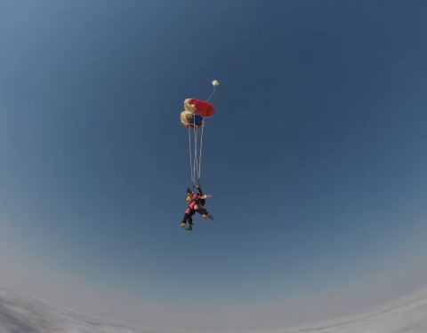 從直升飛機上自由墜落 到6000英尺降落傘打開 徐徐降落的的樂趣 人生僅一次足夠啦 叫愛人一起...