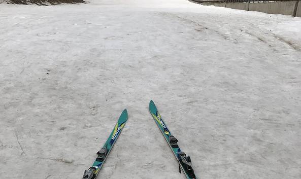 第一次滑雪环境不很好,大门外全是雪水,不好走,