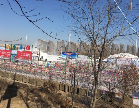 高尔夫球场已经拆际了但是原景色没变现对外开放,国家准备在这兴建全民健身公园,由于冬季拍摄的草已不绿,最近临时建了个冰雪乐园,在靠近三好桥那还有在建的蓝球足球场,夏天还是相当的美,草地特别好还有大片向日葵别有一番景象