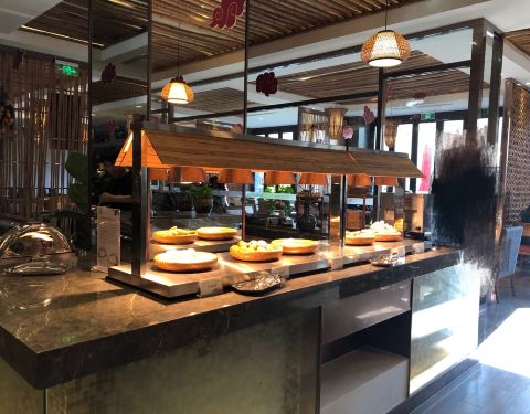 节假日和朋友一起来这边度假⛱️,泡泡温泉♨️打打高尔夫️♀️,谈天说地,很嗨皮 位置:位于苏州比较郊区的地方、自驾比较方便,周围景点餐厅也不多,需要开车。不过酒店很大,本身就是个景点。 房间设施:进入酒店,大堂看上去还不错,但是走到自己的房间走了好远好远,早上去吃早饭,标识很不清楚。酒店房间基本都在一二三层,横向发展,一层有好多好多房间。房间内自带阳台,窗外景色还算可以,泡杯茶喝喝很不粗!床️还蛮舒服的,但是卫生间设施比较low,很多地方都斑斑驳驳生锈了。 酒店里没有咖啡,只有几包茶叶。 酒店自带温泉♨️,有好多室外池子,泡泡还蛮舒服的。室内也有池子,还有桑拿♀️。 酒店自带高尔夫⛳️球场,住店客人可以免费玩,一个房间一根杆,一桶球100个~ 体验一下很不错~ 作为一个温泉酒店的早餐,这家早餐让我有点大失所望。 一大早找早餐厅绕了一大圈,指示标志非常不清晰。 东西品种真的是太少了,基本没有热的炒菜,一档是糕点包子之类的,面包蛋糕品种比较少,也比较low。炸物一档,都太油了,很难吃… 面档还算可以,有小馄饨,苏食面,还有煎培根。但是为什么没有煎鸡蛋!!! 总体就是觉得品种太少。 800元一间的价格,性价比还算OK