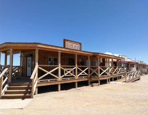 在科罗拉多大峡谷的西峡谷旁模拟建造了一个西部牛仔村,参观完西峡谷的游人被大巴直接拉到了这里,孤零零的木质结构小屋还挺苍凉,可惜少了几个扮演西部牛仔的演员,显得不太真实。