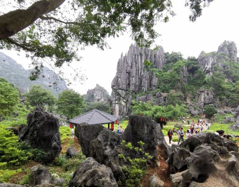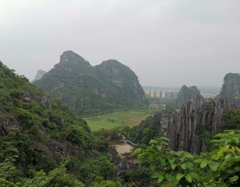 自驾来到景区已差不多下午3点了,取票点易找且兑票迅速。进入景区马上坐上电车观光游玩(每人10元,可多次乘坐,虽说景区比较小,个人认为坐电车还是很必要),去爬了据说最高的山峰下来吃了碗豆腐花(5元,一般)马上坐电车转战玻璃栈道。沿指示牌上去到栈道售票口(上玻璃栈道需另付40元/人),栈道比较短,能体验一下也是值了。过了栈道可选择徒步下山或滑梯下山。个人选了滑梯下山,刺激好玩。滑梯下山后已5点半了,坐电车到大门口马上前往龙洞(开车不到5分钟就到门口),可惜已关门。 建议控制好时间尽量在5点前把所有项目玩好。总体来说景美工作人员服务态度也挺好,很热情。有机会还会再去的!