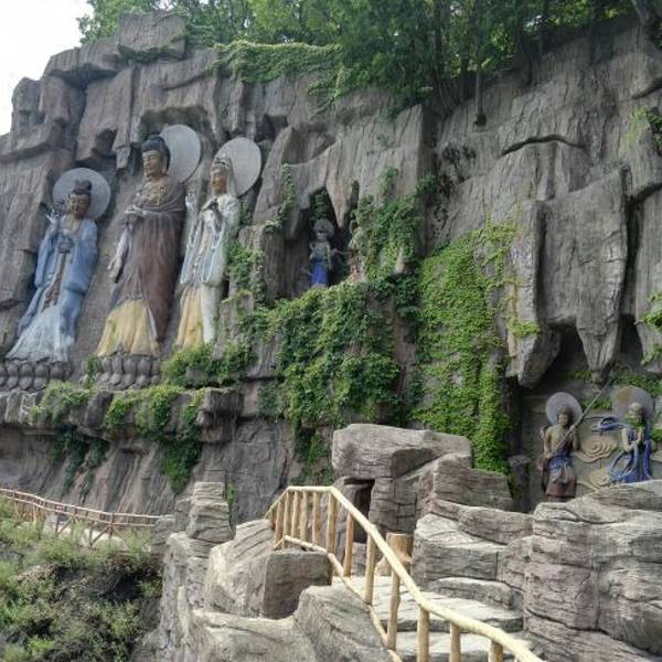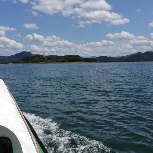 一个不错的小岛,四面环湖,是集观光和佛家文化于一体的旅游胜地,其中彩绘的26尊雕刻佛像色彩鲜艳、栩栩如生让人流连忘返。岛内绿树成荫在岛上感觉非常凉爽,岛内新建了财神道场及青铜制造的杨柳观音(高30余米堪称全国第一),景点众多,是一个不错的拜佛游玩胜地。