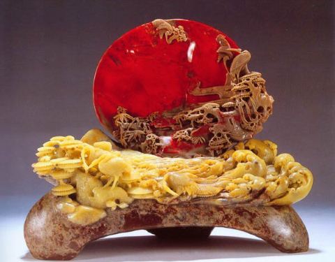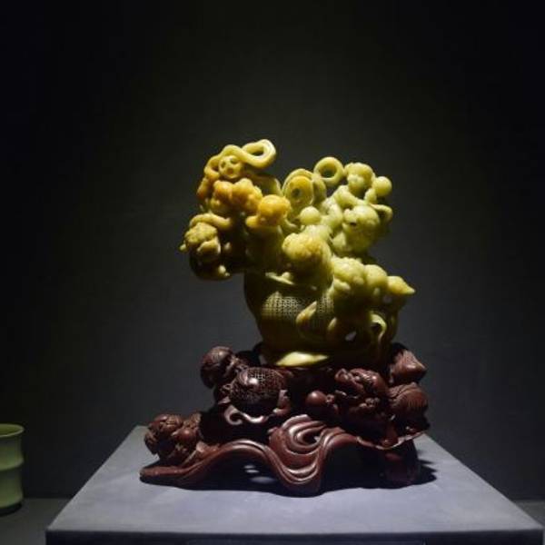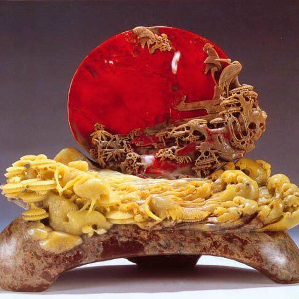 ...意去青田石雕博物馆参观了一下,很高兴能够近距离观赏到92年邮政发行的《青田石雕》邮票的四件原作
