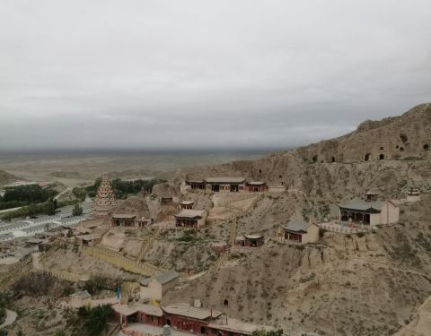 景色很好! 庙宇分为两部分,相隔几百米,后山相连,一处是文殊寺院,一处是文殊寺景色很好!不过现在修缮中,据询问石窟目前暂不开放,只能看到一处千佛洞,内有壁画,与莫高窟类似的那种。 庙宇分为两部分,相隔几百米,后山相连,一处是文殊寺院,一处是文殊寺。