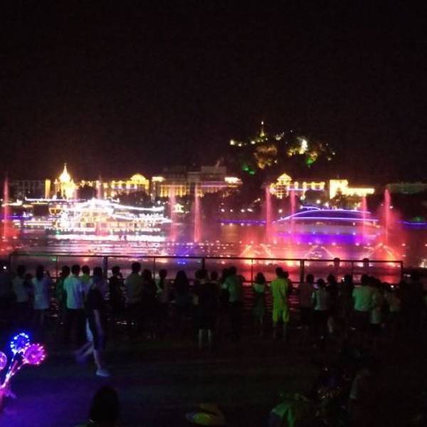 坐着夜航游船观赏柳江璀璨的夜景真是人生一大快事,也是最省力的游览方式,唯一缺点大约就是票价有点贵了坐着夜航游船观赏柳江璀璨的夜景真是人生一大快事,也是最省力的游览方式,唯一缺点大约就是票价有点贵了。每晚有两个时段的船,正好配合音乐喷泉和瀑布的时间