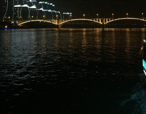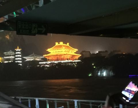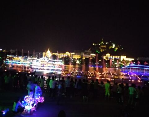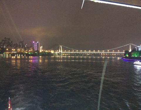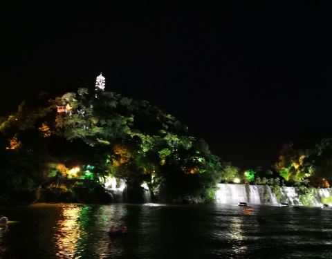 坐着夜航游船观赏柳江璀璨的夜景真是人生一大快事,也是最省力的游览方式,唯一缺点大约就是票价有点贵了。每晚有两个时段的船,正好配合音乐喷泉和瀑布的时间