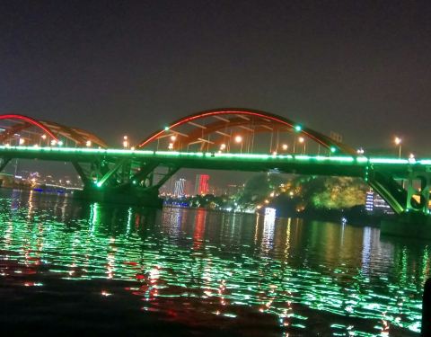 坐着夜航游船观赏柳江璀璨的夜景真是人生一大快事,也是最省力的游览方式,唯一缺点大约就是票价有点贵了
