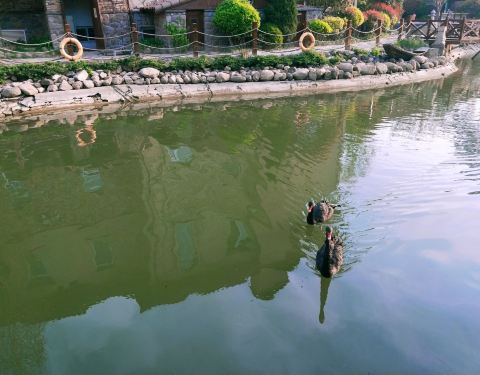 非常优美的环境,仿佛置身于德国小镇非常优美的环境,仿佛置身于德国小镇。大小不一的室外泡泉,氤氲的蒸汽,一边泡澡,一边欣赏泡池旁边湖里游弋的天鹅,湖对岸的美丽景色,……