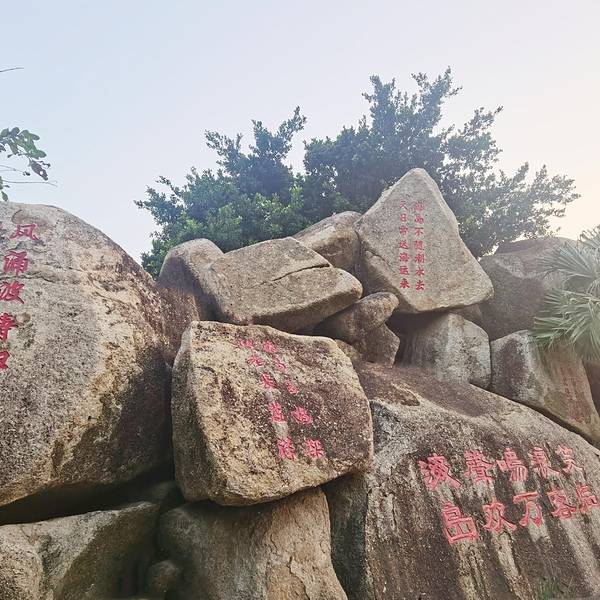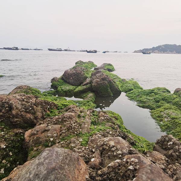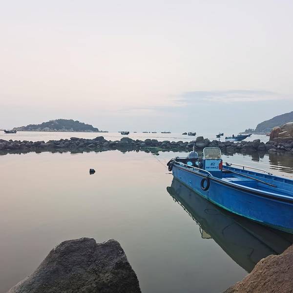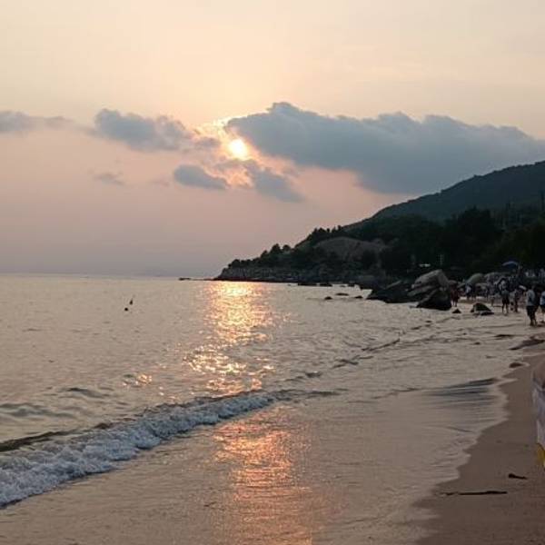 这一段海岸线并未做太多开发,比较原生态,风景也不错。放好行李,马上来到海边看日落。日落很美。礁石很美徜徉在浮月村,直到天色向晚,开始寻找下一个目的地和晚上休息的地方。原计划去浪琴湾,发现路程不近,考虑到明天下午如果太晚,可能会遇到假期结束后的返程高峰。经过一番研究,决定到离此地不远的广海湾投宿,...徜徉在浮月村,直到天色向晚,开始寻找下一个目的地和晚上休息的地方。原计划去浪琴湾,发现路程不近,考虑到明天下午如果太晚,可能会遇到假期结束后的返程高峰。经过一番研究,决定到离此地不远的广海湾投宿,这里有一处海角城旅游度假中心。沙滩和落日余晖来到海边时,天还没有黑下来,很多人在海边等着看日落。这一段海岸线并未做太多开发,比较原生态,风景也不错。日落很美找到提前在网上订好的酒店住下,虽然在海边,价格倒也不贵,一方面是疫情的影响,一方面这一区域可能也不是特别热门的景点。大礁石放好行李,马上来到海边看日落。平静的海湾这一带海边有几处海鲜餐厅,到了晚上,人还真不少,估计大部分是附近的居民们吧,拥到这里吃海鲜。礁石很美我的兴趣则在大海上,特别是海边的礁石,感觉特别有意思。爬到这些巨大的礁石上面,看海浪一波又一波的冲上来。太阳慢慢地落入海平面,只在海面上留下一片金黄。大礁石晚餐当然少不了海鲜和黄鳝饭。远处的小岛是古舟岛第一天一早起来,又跑到这片礁石上转了一圈,感觉大自然的力量很神奇。海边的晚霞很美海角城的主要景点其实是海湾中的古舟岛,离岸不远,需搭乘游船过去。不过,可能因为第一天的行程太过紧凑,另外也怕太晚上堵车,吃过早餐就直接踏上回程的路,这个地方也就被错过了。早上的海滩 展开