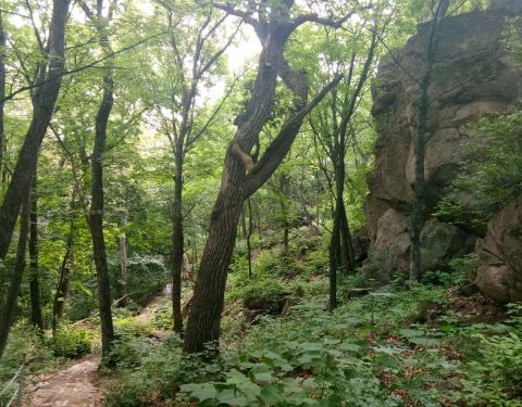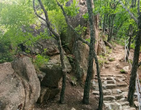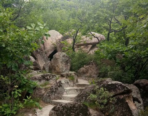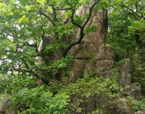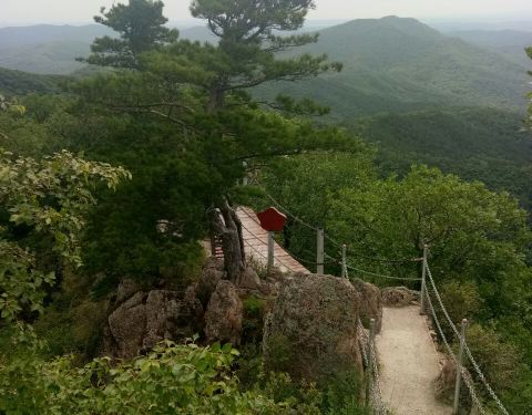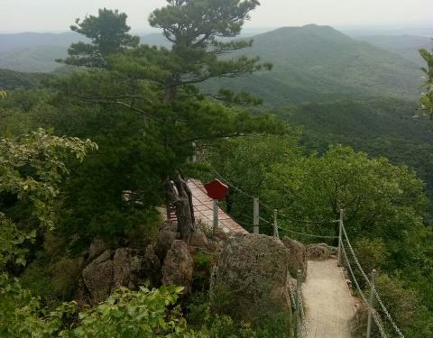 悬羊岭景区山势陡峭,最高海波500多米,最高峰很是险峻,登高望远,茫茫群山,一望无际,很有会当凌绝顶,一览众山小的气势,山上多柞木,还有蝴蝶石、石上松、石、杜鹃海等,悬崖峭壁有点探险的感觉。