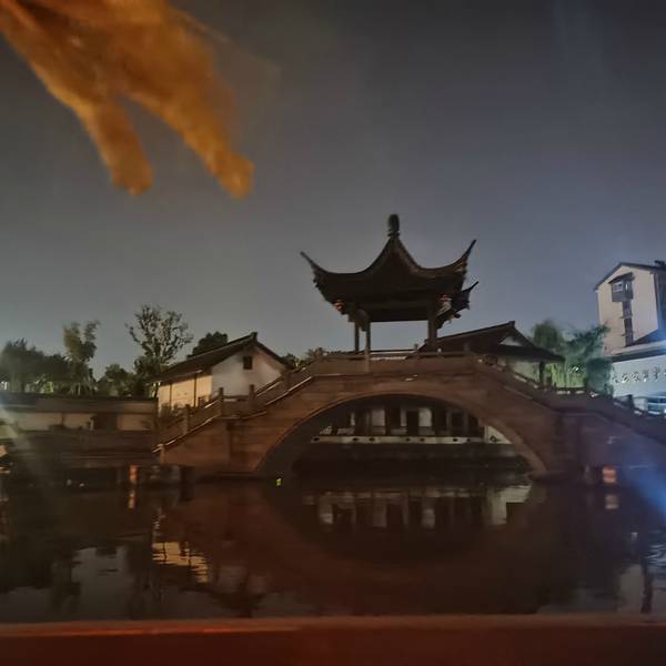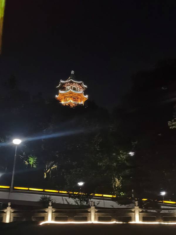旅程的最后一站,护城河夜游,在稽山公园里坐船,其实网上对这个项目评价不高,因为河道两边并没有什么灯光的景观,白天看可能还有些江南水乡风情,晚上看真的效果不佳。我几乎每到一个城市都会来一个水上夜游,不得不说确实还得是大城市里高楼大厦灯光璀璨来得好看,关键时间还长,差不多一个小时了,后来船舱里都是大人聊天嗑瓜子,小孩子疯疯闹闹, 果然这里还是适合几个熟人包船游玩,就是不知道有没有这个项目。 另外提一句,来绍兴几天,沈园之夜、鲁镇社戏这样的演出必须按照入座当然是应该的,但是连夜游护城河的画舫里的每张椅子上都是有号码的,必须按号入座,这一点真的很好,否则还真可能比较容易出现问题。这是整条河上最好看的桥了,好像位于绍兴文理学院里面终于有了现代化城市的感觉,但是拍出来真的很不起眼最后下船后在稽山公园转了一下但是灵秀这个词不是湖北的旅游宣传词吗?