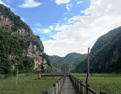 免费,少有的景点,沿山边有小路,可以过桥,不用走栈桥往返。