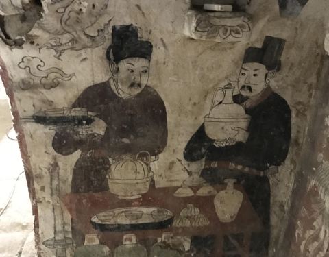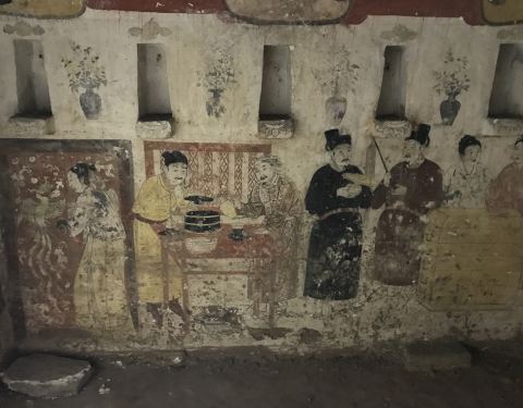 为了保护古墓,现在只对外开放了一个。 古墓不大,无论你有什么证件,统一收费50元,爱看不看。 墙上的壁画虽然已经遭到破坏,但还是非常有价值,尤其是保存着中学历史课本上的宋乐图及高校天文系学生必研究的把中西方星象结合在一起的天文星象图。当然还有一个世界上目前只有美国有的白色香炉,这在中国宋代的壁画上出现过。
