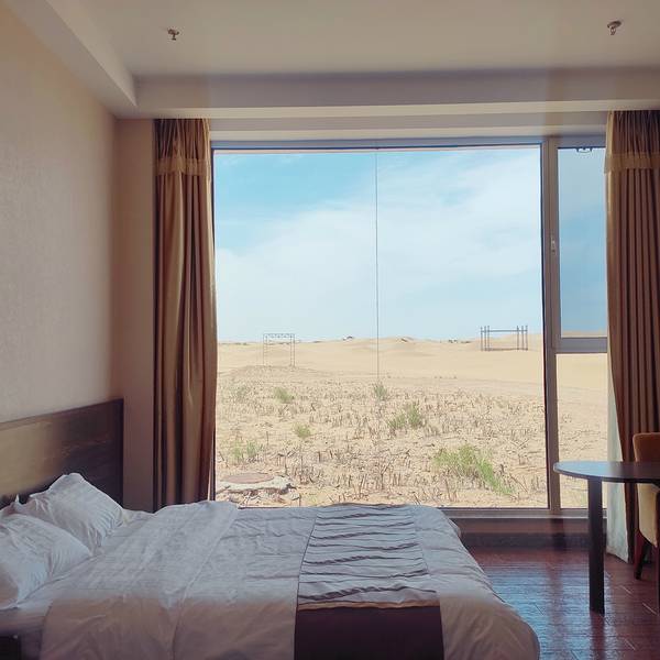 看沙漠其实不一定要到夜鸣沙。库布齐沙漠是我国第七大沙漠,范围非常大。比较火的景区有距离包头市几十公里的响沙湾,内有比较有名的莲花酒店,但是价格偏高。还有比夜鸣沙再远一点的七星湖景区和酒店,酒店是摩...