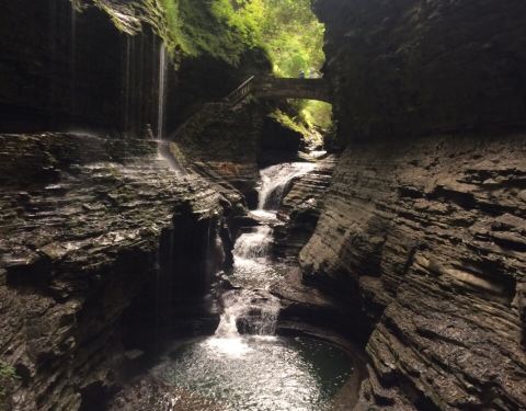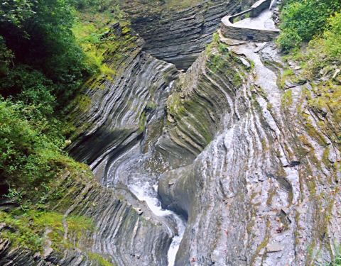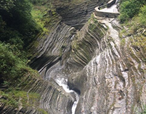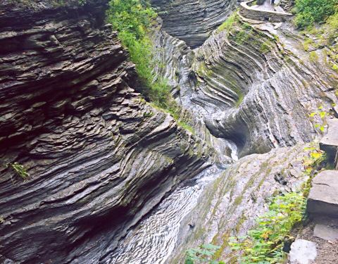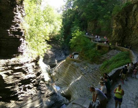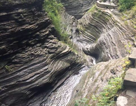 去沃特金斯大峡谷是从纽约去尼亚加拉瀑布途中的一个景点,是一个州立公园,片层状的岩石形成的峡谷,一条溪流从峡谷穿过,是很独特的自然景观,值得去一去。