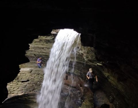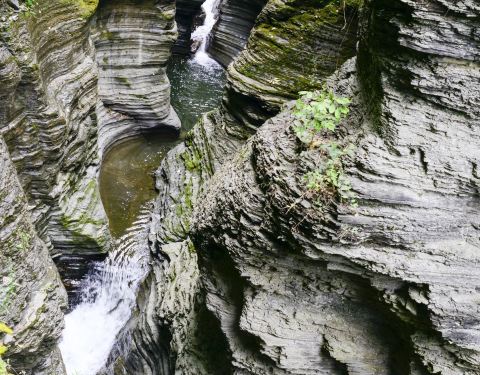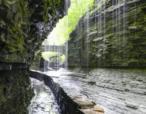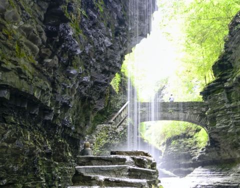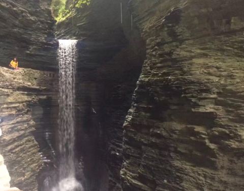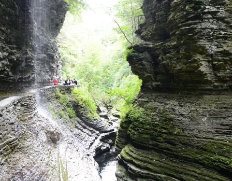 沃特金斯峡谷位于纽约州的一个州公园沃尔金斯格伦公园里面,作为这一个公园里面的精华段,这一段路总共有几条步道。 其中最出名的就是乔治步道,景色方面主要是围绕着这条峡谷里面的河流,一直从上游走到下游是最方便的。 最好的地方就是每一段路都有它的指示,基本上不会走错路。沿着小溪走就可以了,一路上都会看到很多地质风貌,当然少不了的就是有很多的小瀑布,其中走到后段的话是一个比较大的天坑瀑布。 沿途的绿化跟空气都相当好,游人也是比较的多,走到下面就是游客中心,美中不足的地方就是在山谷里面经常是没有信号的,只能够打电话,不能够上网。