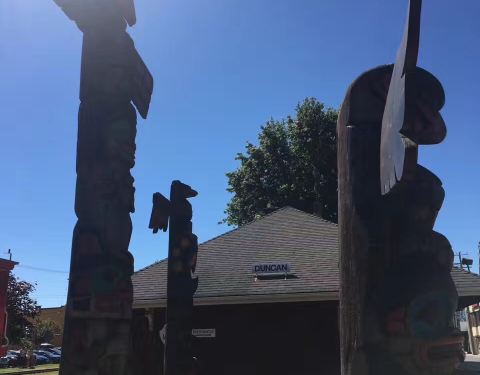 邓肯镇Duncan,镇上到处可见的木雕图腾,用其丰富的造型手法,可以看得出不同原居民部落特征,very nice!! 哈哈哈