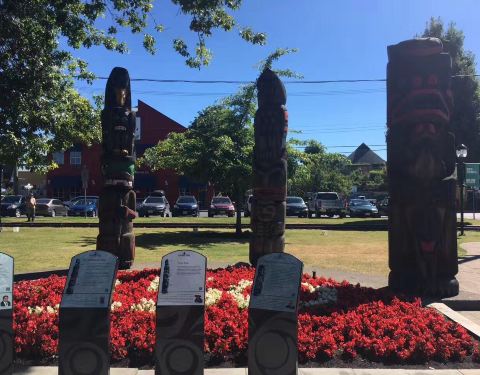 邓肯镇Duncan,镇上到处可见的木雕图腾,用其丰富的造型手法,可以看得出不同原居民部落特征,...