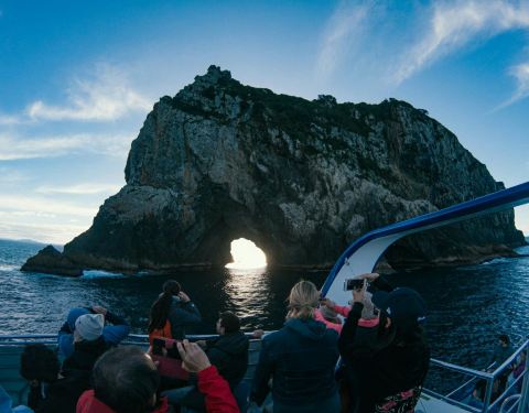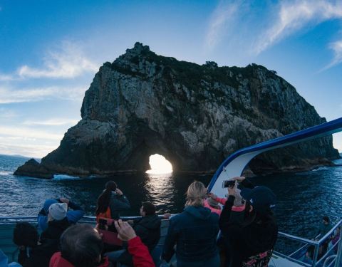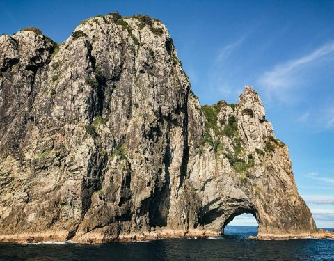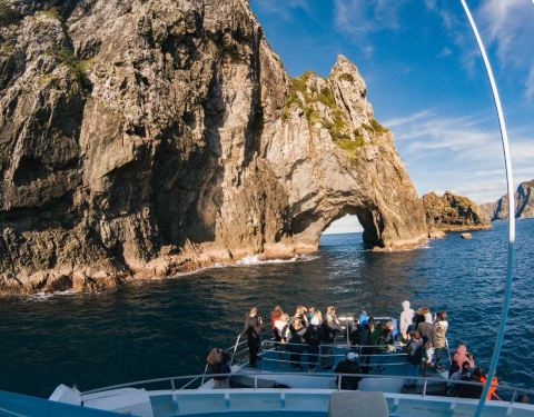 岩中洞是新西兰岛屿湾中的精华。海中小岛上天然形成的空洞,有着神奇的毛利传说。成事在天,各种天气原因决定着你的船能否成功穿越岩中洞!