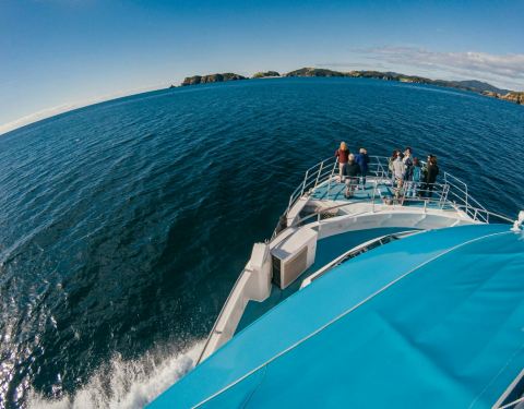 新西兰北岛是海豚和鲸鱼经常出没的地方,参加这里的游船出海观看海豚是不错的旅游项目。同时这里有一座海岛非常有趣,中间有个大洞,船可以通行,有点像我们桂林的象鼻山,十分的漂亮。