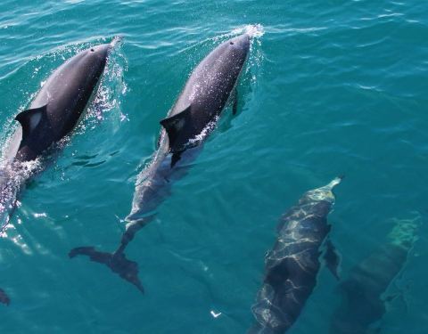 来到新西兰的北岛,一定要坐游船出海寻找鲸鱼和海豚。而最值得参加的,就是到海中的岩中洞附近寻找海豚的身影。海豚会为着大家的游船嘻嘻戏,时而跃出水面,时而潜入水底,十分的欢快,感觉看到人类都非常的开心,真是可爱的动物。