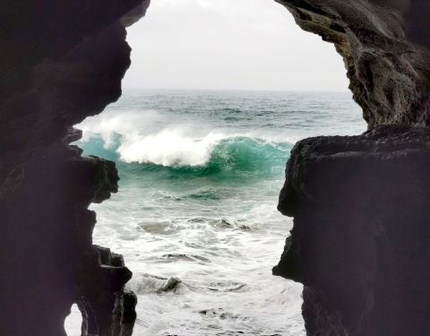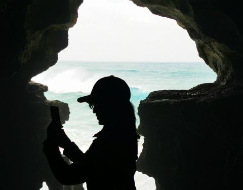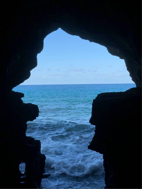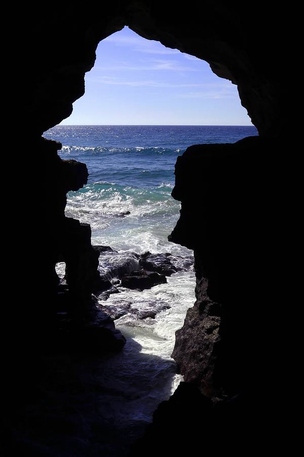 体验从山洞中看大海的独特视角。 酷似非洲地图的洞口形状,令人浮想联翩。